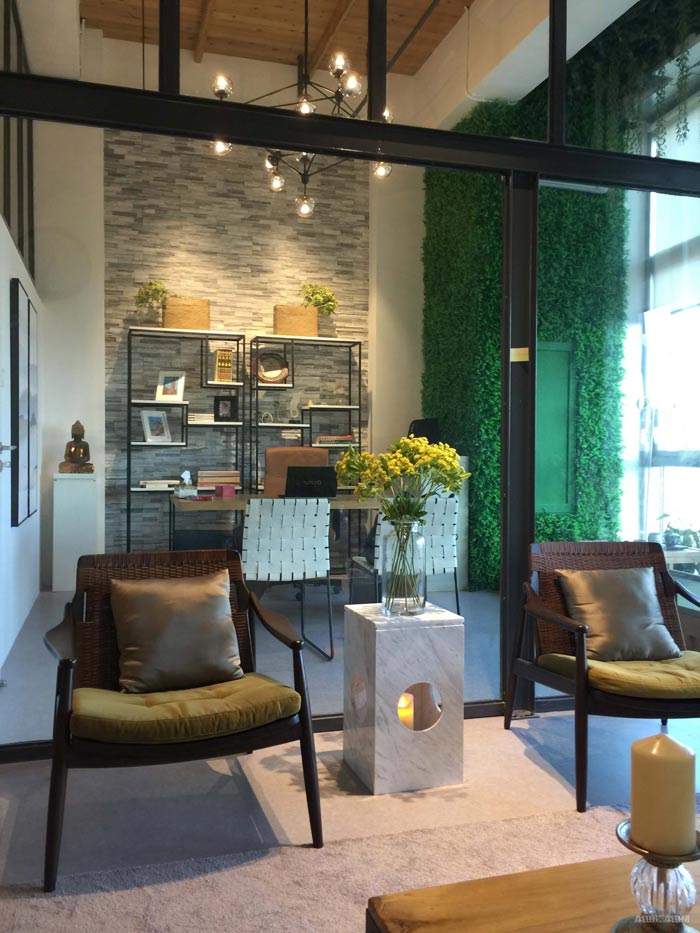 實例二:loft風(fēng)格服飾公司辦公室設(shè)計方案,采用追求原始的現(xiàn)代風(fēng)格,所以在設(shè)計的時候,選擇綠色和原木色等較接近自然的材質(zhì),作為空間的主體構(gòu)成,結(jié)合鋼結(jié)構(gòu)和灰色襯托主體的現(xiàn)代感,營造一種輕松愉悅的辦公環(huán)境。辦公區(qū)設(shè)置在空間的較里邊,這樣的設(shè)計給員工一個清靜的辦公空間,外部為討論區(qū)、交流區(qū)、會議區(qū),一切都遺傳了精致的設(shè)計作風(fēng),讓人對企業(yè)的產(chǎn)品充滿期待。